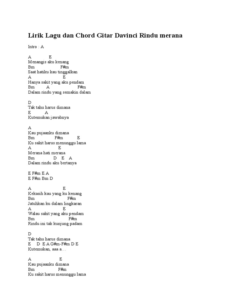 Lirik Lagu Dan Kunci Chord Gitar Hanya Rindu Andmesh