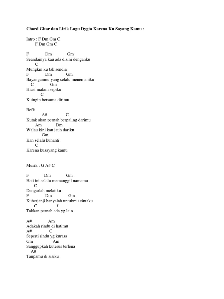 Chord Gitar Dan Lirik Lagu Dygta Karena Ku Sayang Kamu